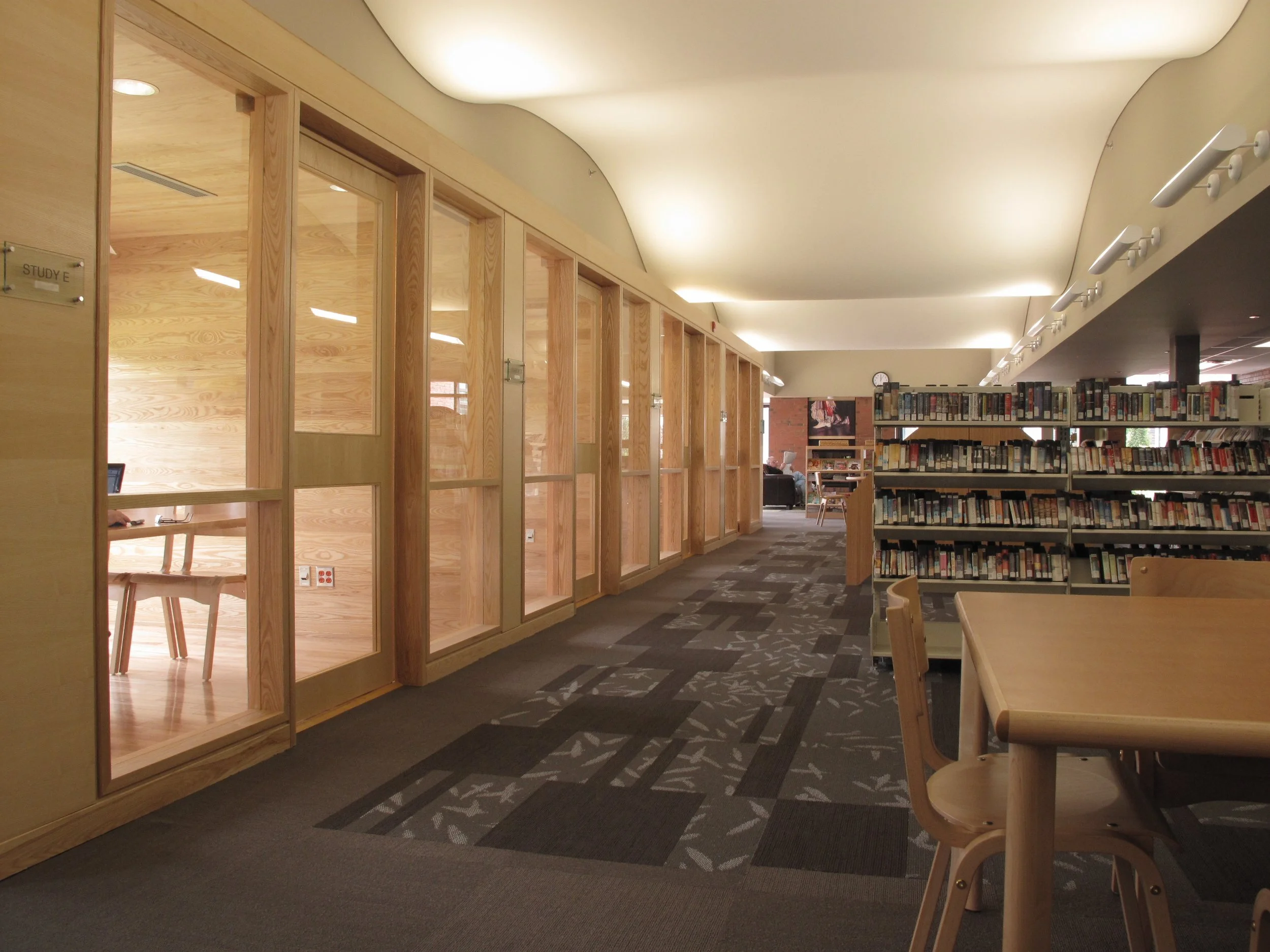 The library contains dedicated Teen and Children’s areas, a series of quiet study rooms, a fireplace lounge, computer training centre, seating, lounge spaces, and outdoor reading terraces. The library also includes the Kent Farndale Art Gallery, and a large, new community room complete with outdoor terrace.